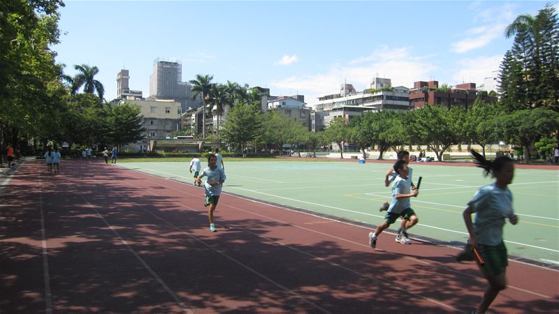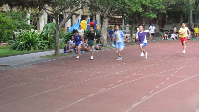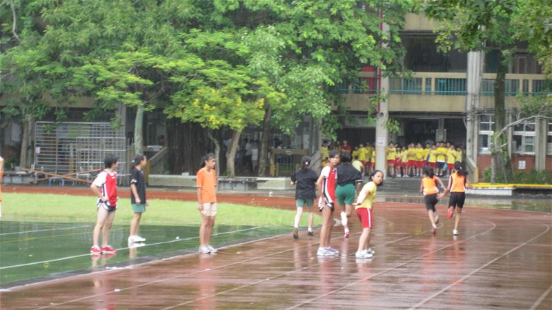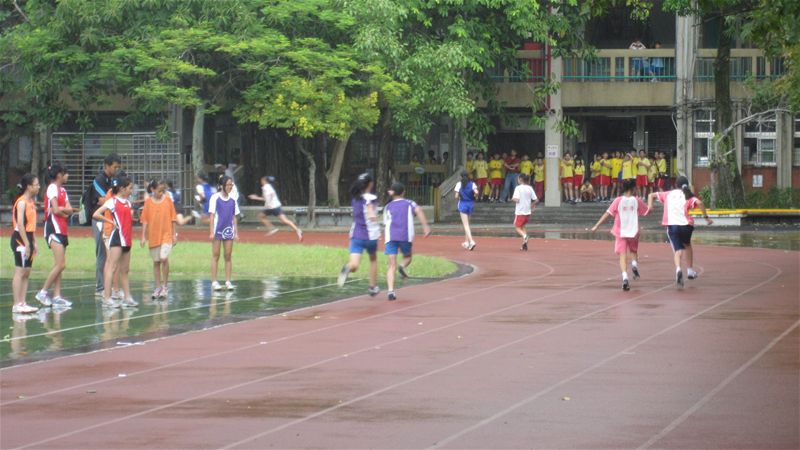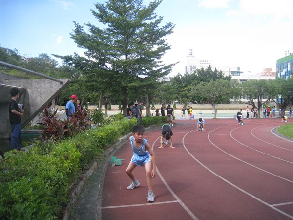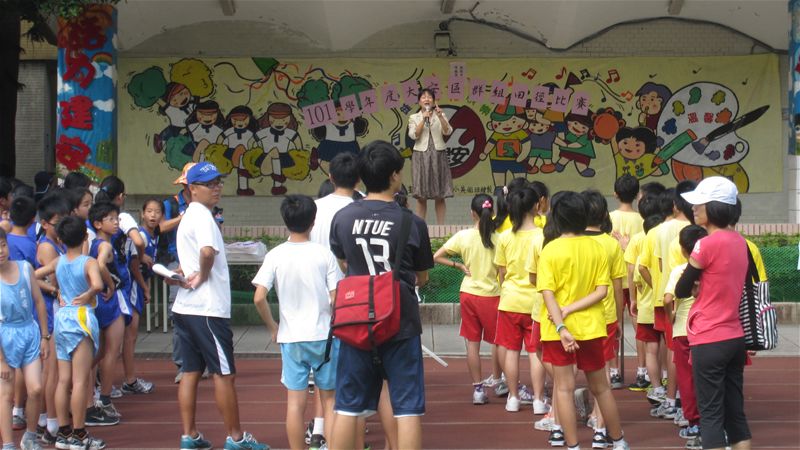 101年度大安區田徑群組交流比賽感謝建安、新生、國北實小、古亭、龍安、幸安、金華、仁愛、銘傳、葫蘆等學校的參與,雖然後來下場雨,不減小朋友的鬥志,完成了400接力賽,可惜後來大隊接力因雨停賽了,實屬可惜.